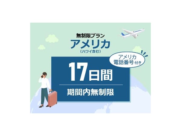 アメリカ - 【アメリカ電話番号付き】無制限 / 17日間