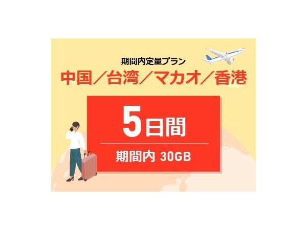 中華圏周遊4ヵ国 - 期間内30GB / 5日間